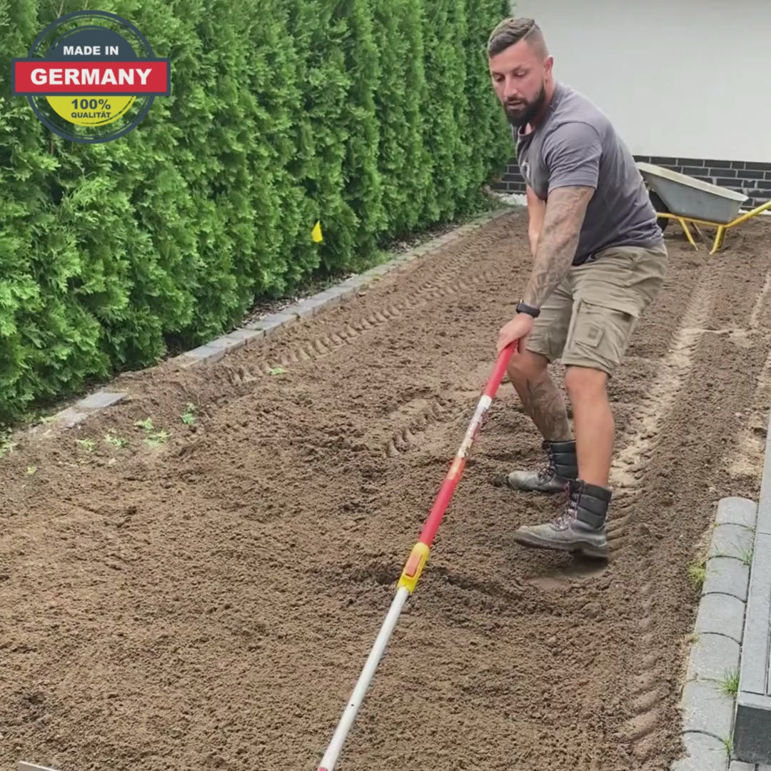 The landscape rake is the ideal garden tool for creating new areas, levelling gravel beds, split, sand, etc.